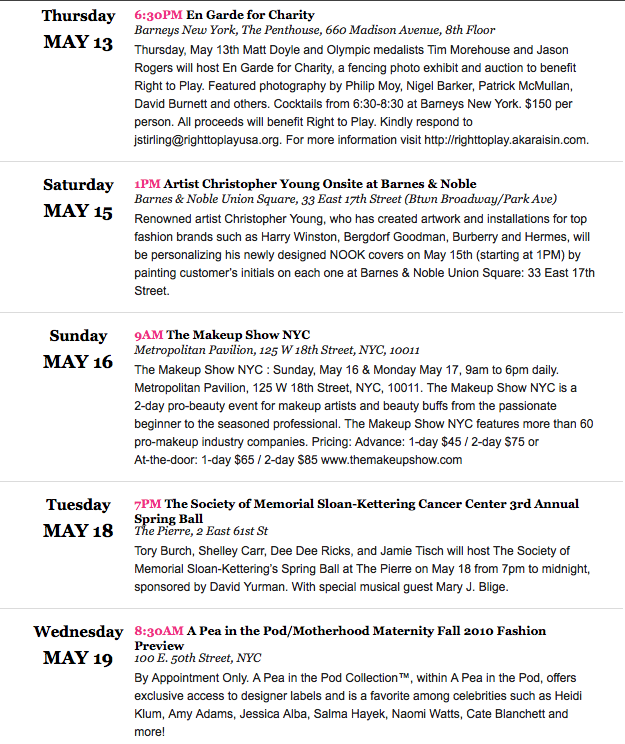 SAMPLE SALE CALENDAR via Dailyfrontrow.com